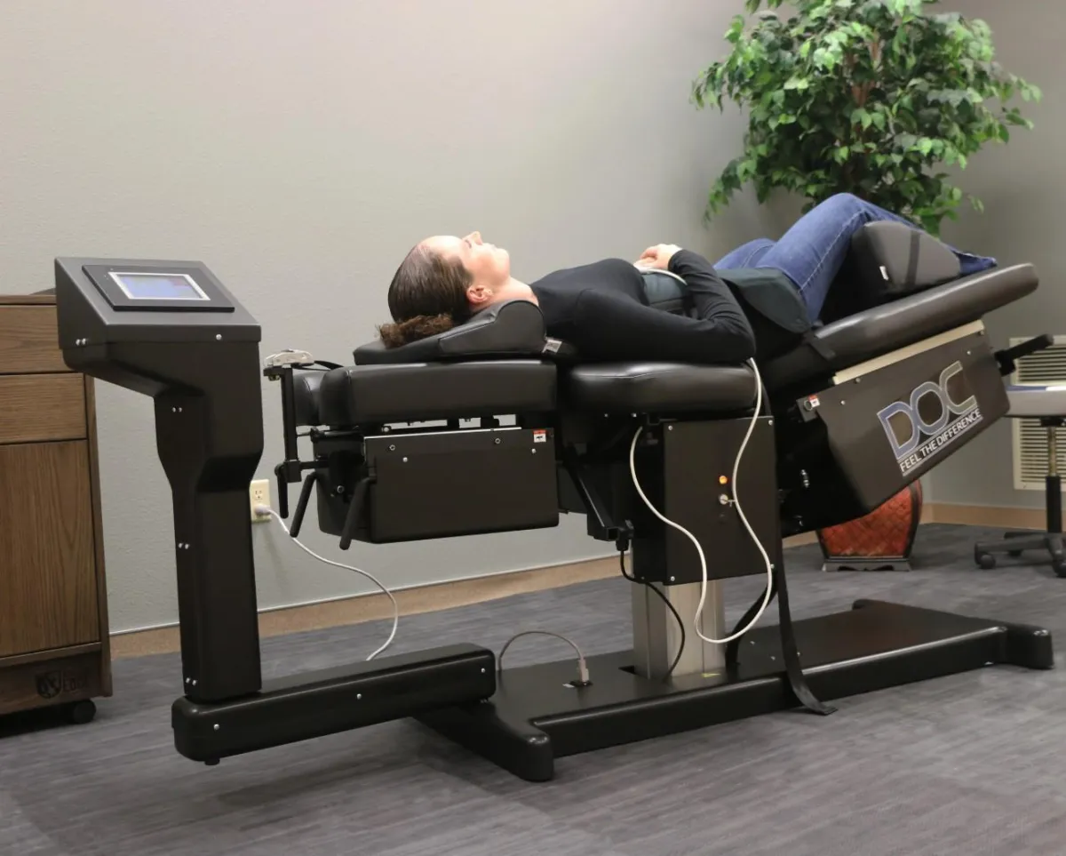 Spinal decompression uses a motorized table to gently stretch your spine, creating more space between the vertebrae.